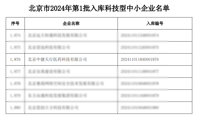 近日,北京市科學(xué)技術(shù)委員會(huì)發(fā)布了《北京市2024年第1批入庫(kù)科技型中小企業(yè)名單公告》。北京中健天行醫(yī)藥科技有限公司再次榮獲北京市科技型中小企業(yè)認(rèn)定,這是公司連續(xù)第七年獲得此殊榮。此次認(rèn)定充分肯定了我司在研發(fā)創(chuàng)新方面的實(shí)力,標(biāo)志著公司在創(chuàng)新和研發(fā)領(lǐng)域得到了國(guó)家相關(guān)部門的認(rèn)可,未來(lái),我司將進(jìn)一步打造科技創(chuàng)新平臺(tái),提升自主創(chuàng)新能力和企業(yè)核心競(jìng)爭(zhēng)力,推動(dòng)公司實(shí)現(xiàn)跨越式發(fā)展。