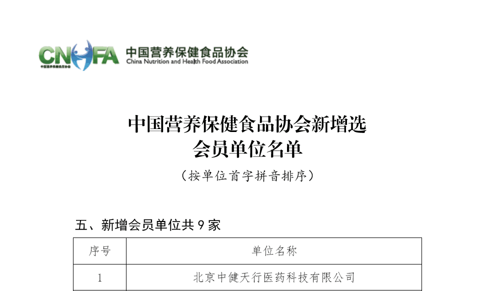 我司正式成為中國營養(yǎng)保健食品協(xié)會會員單位