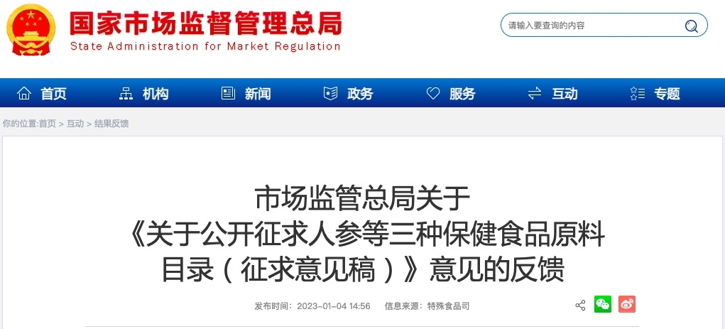 市場(chǎng)監(jiān)管總局于2022年10月25日至11月25日對(duì)《關(guān)于公開(kāi)征求人參等三種保健食品原料目錄(征求意見(jiàn)稿)》(以下簡(jiǎn)稱(chēng)《原料目錄》)向社會(huì)各界公開(kāi)征求了意見(jiàn),現(xiàn)將有關(guān)情況說(shuō)明如下:
