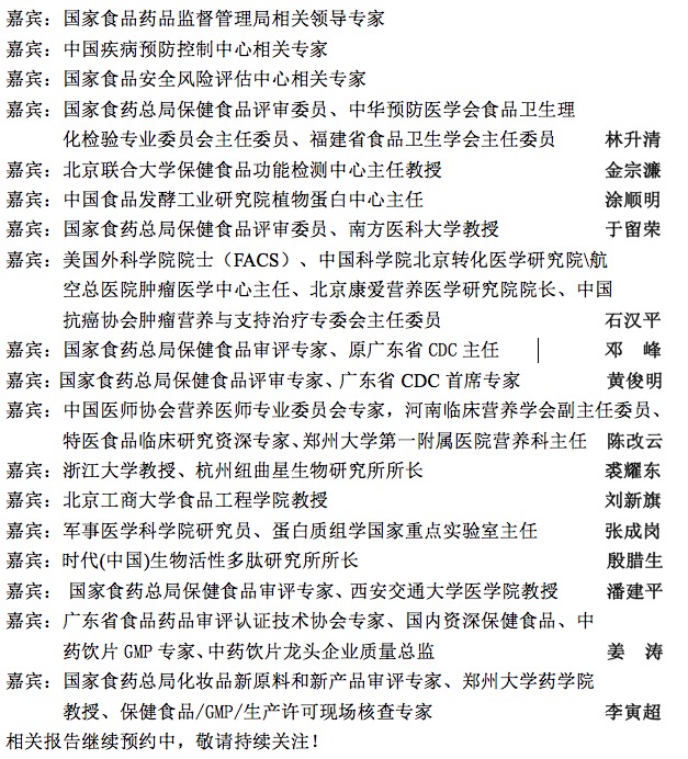 為充分發(fā)揮橋梁紐帶作用,使各相關(guān)單位及時(shí)正確理解相關(guān)法規(guī),理清最新政策法規(guī)變更要求,明確產(chǎn)品的申報(bào)注冊(cè)、技術(shù)審評(píng)的操作要點(diǎn),解決申報(bào)過(guò)程中遇到的核心問(wèn)題;加強(qiáng)研究機(jī)構(gòu)與生產(chǎn)企業(yè)在研究開(kāi)發(fā)方面的溝通與交流,實(shí)現(xiàn)食品健康營(yíng)養(yǎng)學(xué)、研、產(chǎn)各方面的深入對(duì)接合作。我單位將于2016年9月第七屆中國(guó)(廣州)國(guó)際保健食品及特醫(yī)食品展覽會(huì)(HCI2016)召開(kāi)之際,在廣州同期舉辦第三屆跨學(xué)科“特殊醫(yī)學(xué)用途配方食品”高峰論壇暨功能營(yíng)養(yǎng)與保健食品產(chǎn)業(yè)發(fā)展研討會(huì)。本次論壇以“學(xué)研產(chǎn)對(duì)接、提高成果轉(zhuǎn)化率、促進(jìn)行業(yè)發(fā)展” 為主題,圍繞目前臨床營(yíng)養(yǎng)特醫(yī)食品最新前沿動(dòng)態(tài)和各方最關(guān)心的焦點(diǎn)問(wèn)題進(jìn)行主題演講與深入探討,為參會(huì)者提供最專業(yè)權(quán)威的指導(dǎo),專業(yè)有效的咨詢服務(wù)。