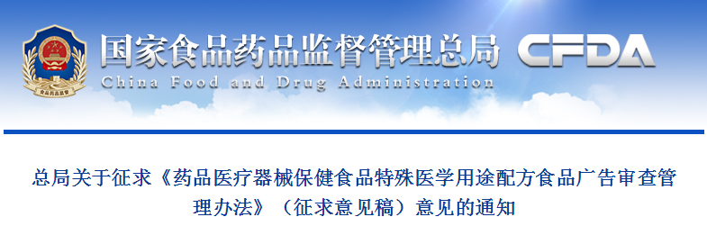 CFDA發(fā)布《藥品醫(yī)療器械保健食品特殊醫(yī)學(xué)用途配方食品廣告審查管理辦法》(征求意見稿)