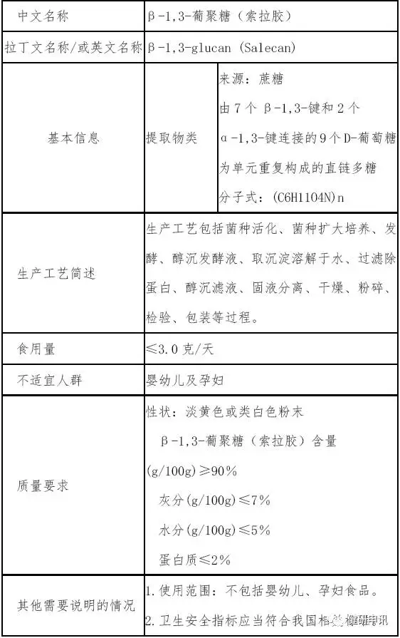 2010年第9號公告批準(zhǔn)酵母β-葡聚糖為新食品原料,公告內(nèi)容: