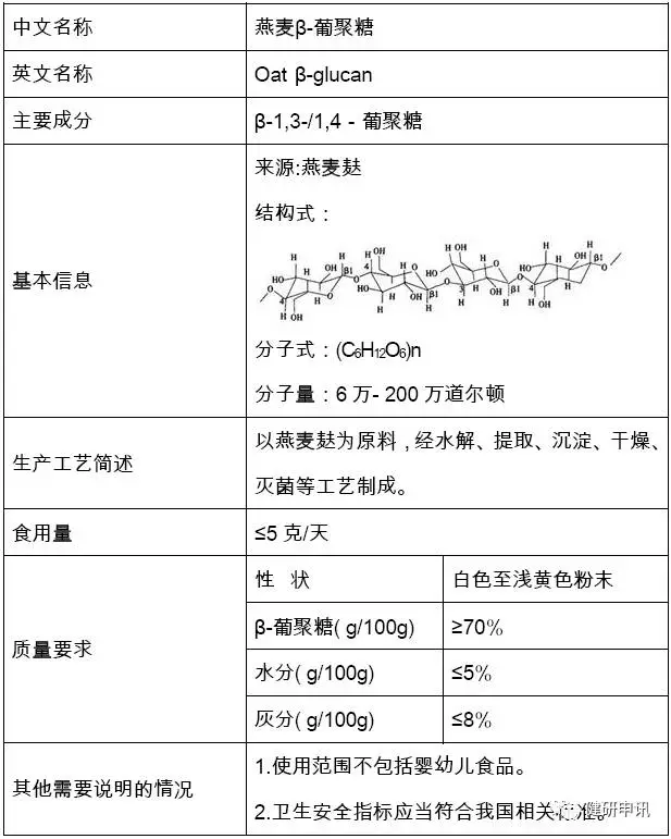 2014年第20號公告批準(zhǔn)燕麥β-葡聚糖為新食品原料,公告內(nèi)容: