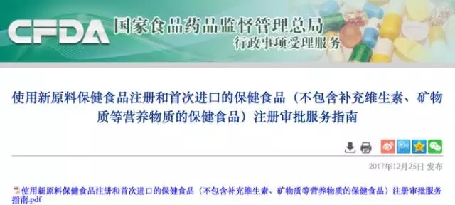 12月25日,國家食品藥品監(jiān)督管理局行政事項受理服務網(wǎng)站發(fā)布了《特殊食品類產(chǎn)品注冊審批服務指南》,其中包含了使用新原料保健食品注冊和首次進口的保健食品(不包含補充維生素、礦物質(zhì)等營養(yǎng)物質(zhì)的保健食品)注冊審批服務指南、特殊醫(yī)學用途配方食品注冊審批事項服務指南、嬰幼兒配方乳粉產(chǎn)品配方注冊審批服務指南,具體整理《保健食品新注冊指南》如下: