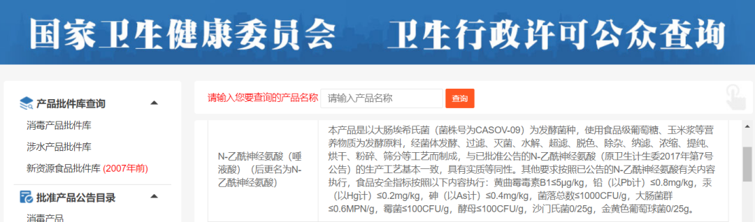 公開資料顯示,N-乙酰神經(jīng)氨酸在2012年受理新食品原料【衛(wèi)食新申字(2012)第0018號】,直到2017年第7號公告批準(zhǔn)為新食品原料。此次終止審查的新食品原料是2021年4月受理【衛(wèi)食新申字(2021)第0007號】,是由嘉必優(yōu)全資子公司武漢中科光谷綠色生物技術(shù)有限公司自主研發(fā)并生產(chǎn)的N-乙酰神經(jīng)氨酸產(chǎn)品(菌株號:CASOV-09)。國家衛(wèi)健委所謂“終止審查”在大多數(shù)情況下實(shí)際上就是認(rèn)可產(chǎn)品可以作為食品原料使用。從審查意見可以看出:中科光谷的N-乙酰神經(jīng)氨酸產(chǎn)品與原批準(zhǔn)的產(chǎn)品在生產(chǎn)菌株上不同,生產(chǎn)工藝基本一致,產(chǎn)品具有實(shí)質(zhì)等同性,并且提出了產(chǎn)品的食品安全控制指標(biāo)。