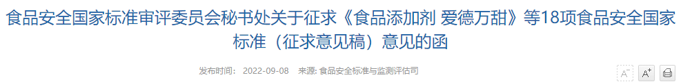 根據(jù)《食品安全法》及其實(shí)施條例規(guī)定,我委組織起草了《食品添加劑 愛德萬甜》等18項(xiàng)食品安全國家標(biāo)準(zhǔn)(征求意見稿),現(xiàn)向社會(huì)公開征求意見。請于2022年10月10日前登錄食品安全國家標(biāo)準(zhǔn)管理信息系統(tǒng)(https://sppt.cfsa.net.cn:8086/cfsa_aiguo)在線提交反饋意見。