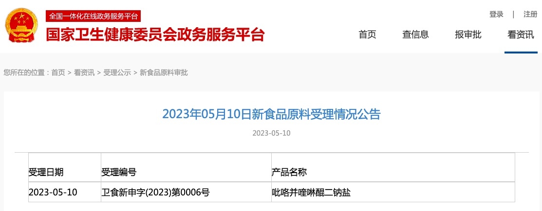 新食品原料 | 國家衛(wèi)健委發(fā)布吡咯并喹啉醌二鈉鹽受理公告