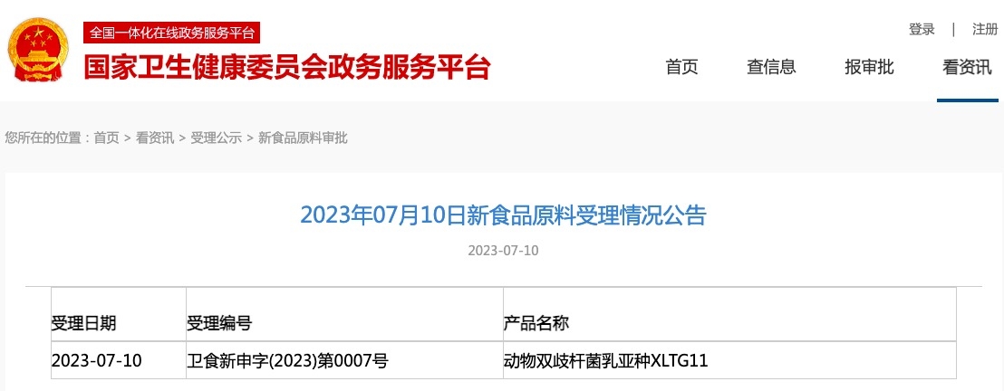 新食品原料 | 國家衛(wèi)健委發(fā)布動(dòng)物雙歧桿菌乳亞種XLTG11受理公告