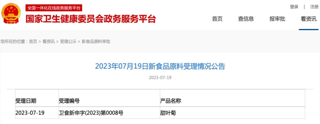 新食品原料 | 國家衛(wèi)健委發(fā)布甜葉菊受理公告
