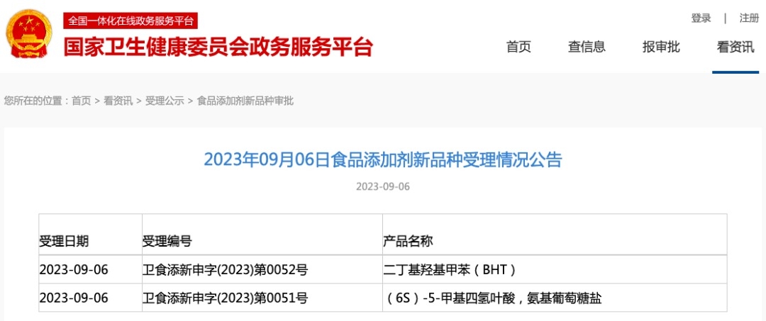 受理編號:衛(wèi)食添新申字(2023)第0051號