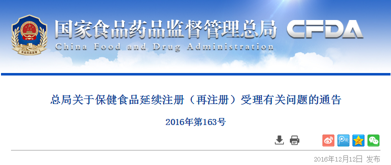 總局關(guān)于保健食品延續(xù)注冊(再注冊)受理有關(guān)問題的通告