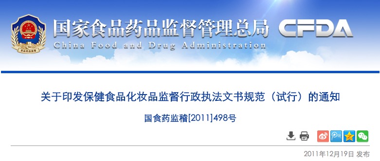 關(guān)于印發(fā)保健食品化妝品監(jiān)督行政執(zhí)法文書規(guī)范(試行)的通知