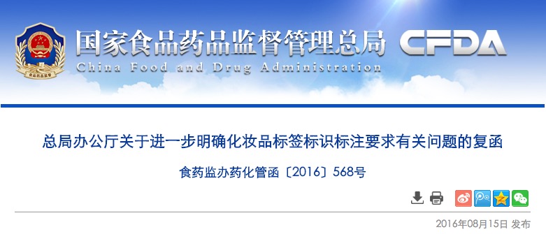 總局辦公廳關于進一步明確化妝品標簽標識標注要求有關問題的復函