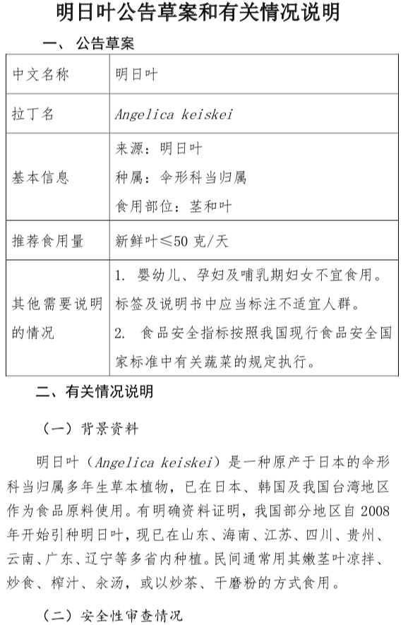 附件為新食品原料明日葉征求意見內(nèi)容及有關(guān)情況的說明,請(qǐng)自行下載閱讀。如有意見或建議,請(qǐng)反饋至xspyl@cfsa.net.cn,并在郵件主題中注明“新食品原料意見反饋”。