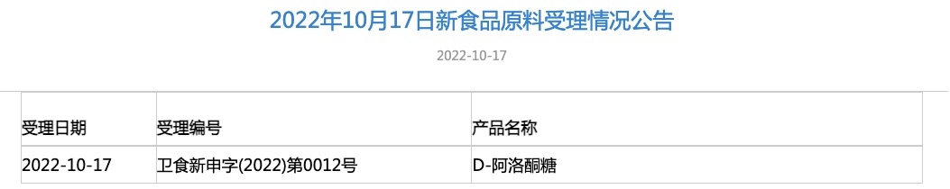 國(guó)家衛(wèi)健委發(fā)布D-阿洛酮糖新食品原料受理公告